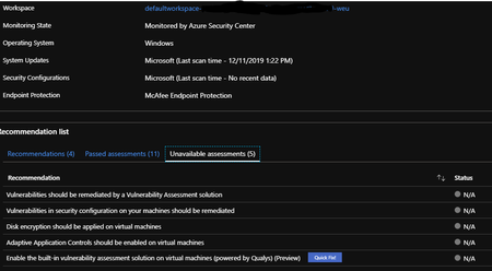 Hello, I have an issue with some VMs that do not show any recent data on Security Configurations, and also show up as unscanned resources for Azure Disk Encryption. They do have information with ...