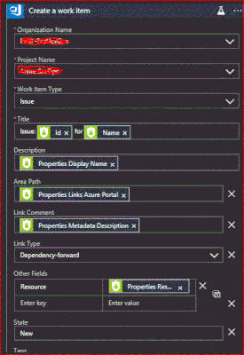 @yoavfrancis so I reorganized the logical app adn on one test without any fields a new bug in Azure DevOps was added. Because of this success I added some values in the devops app.