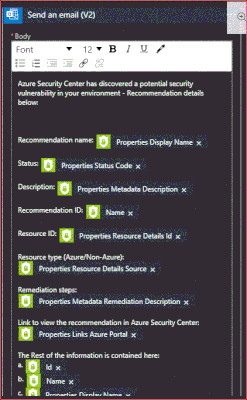 Step 1: Use App --> When an Azure Security Center Recommendation is created or triggered