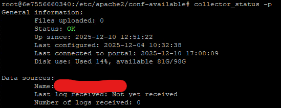But as you can see, no data was received, and if I do a collector_status -P on my docker :