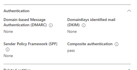 According to MS docs -> If a domain doesn't have traditional SPF, DKIM, and DMARC records, those record checks don't communicate enough authentication status information. Therefore, Microsoft has developed an algorithm for implicit email authentication. This algorithm combines multiple signals into a single value called composite authentication, or compauth for short.