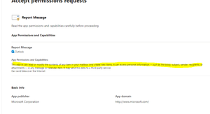 As far as the Report Message add-in is concerned, the permissions are necessary. As stated in other comments, we do need to read the contents, but that is based on and only for what the end-user wants to report. The change permission is similar in that we move the message between folders when users report something. For example, if you report a phish, we will move the item from the Inbox to the Deleted Items folder if necessary.