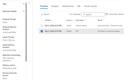 Hi Community, we are getting for two weeks a lot of "Messages containing malicious entity not removed after delivery" Alerts, which i could not understand the reason. In Email Entity it says "ZAP...