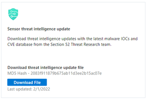 Microsoft has released the February 2022 Threat Intelligence update package. The package is available for download from the Microsoft Defender for IoT portal (click Updates, then Download file).