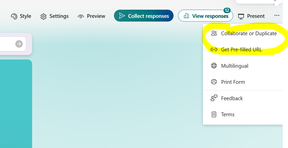 Collaborate or Duplicate with user without a MS Forms license
