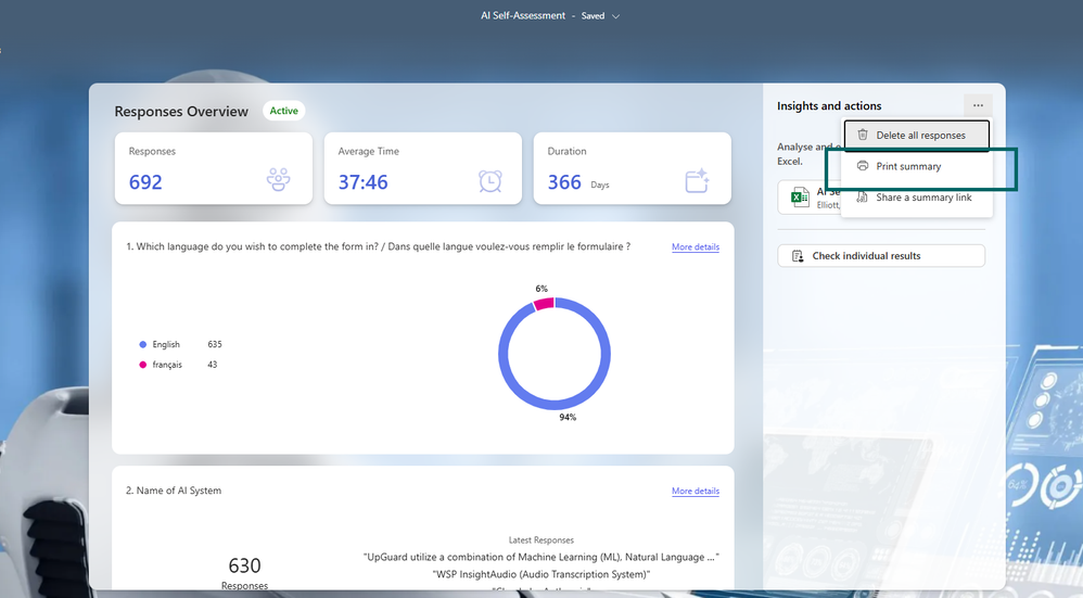 But you could print the summary of the results or download the excel file of the results and send that to the user.Rob