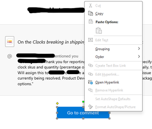 We have a form set up to collect and monitor some "issues". When I get a response, there's a button with a link to "Go to comment". PROBLEM: I don't use my default browser for office365. I can't ...