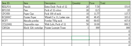 TearCea Forms is not designed for that sort of grid approach. If the items they could order were a static list then you could have 1 section per item and there'd be a question for the ID, description quantity etc. Otherwise you would really need to submit 1 form per item which, if the user wanted to add pens, pencils, paper clips is not so user-friendly.