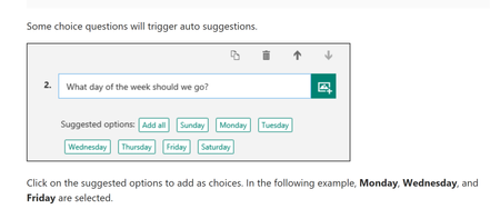 I am using Forms to create a survey. I need to make a 'choice' question trigger suggested options such as shown below. How do I do that?