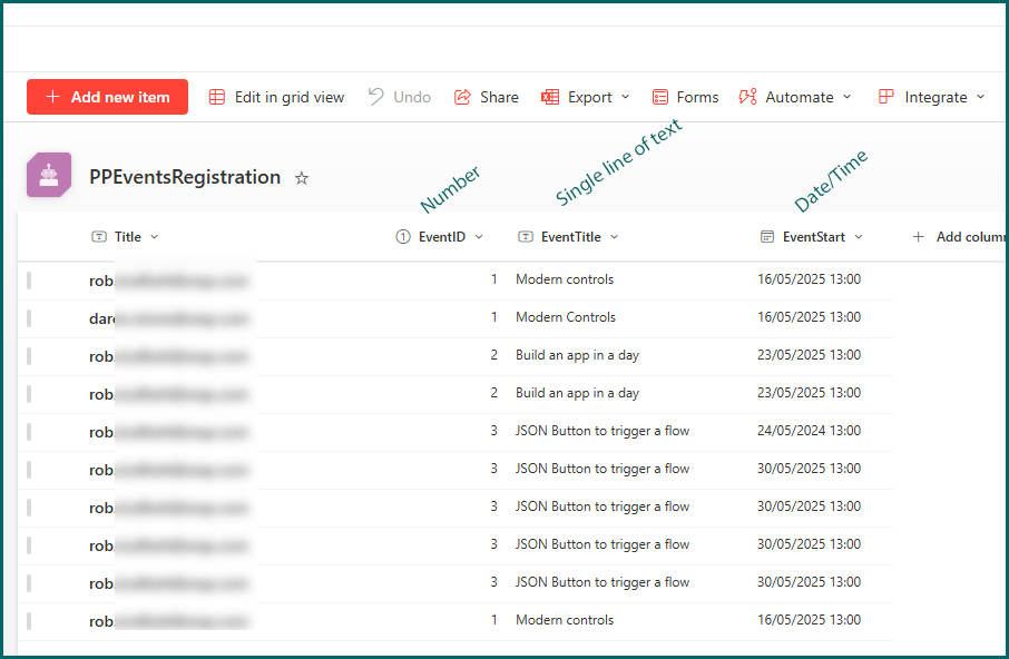 Hi JulieJV Create 2 lists, PPEvents and PPEventsRegistration, as shown in the images below.