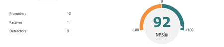 I recently conduted a Net promoter score (NPS) survey using MS forms, while promoters were 12, passives were just 01 and detractors = 00 (Nil); Yet it shows the NPS as 92. Shouldn't it be 100 as p...