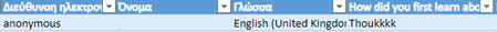 As you can see in the above image the automatic generated fields like e-mail, Name, Language, start time and end time for some reason is in Greek. The questions where are configured from the su...