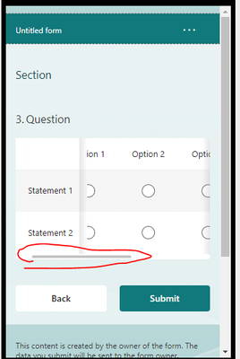 I am experiencing an issue where the Likert scale options are not grouped together on mobile devices. Instead, they display like a table with a scroll bar as per the photo attached. This issue even h...
