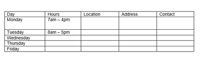 As per below, they'd need to enter hours, location, address and contact?