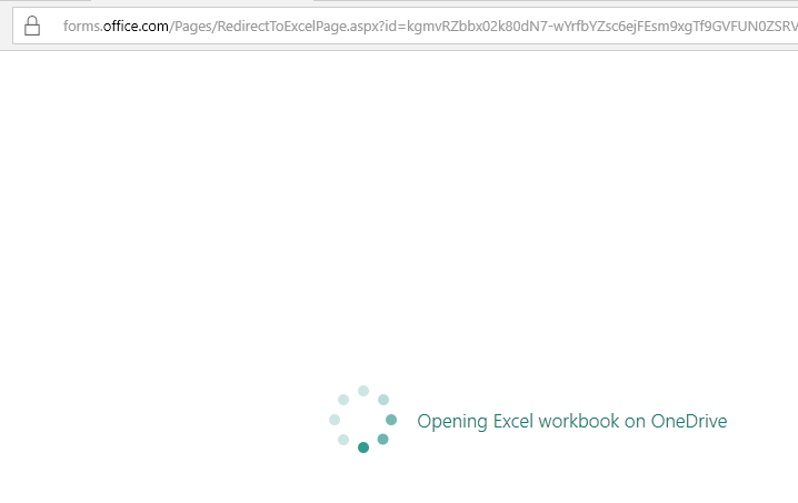 2. copy the url of the new page, it looks like: https://forms.office.com/Pages/RedirectToExcelPage.aspx?id=v4j5cvGGr0GRqy180ZNV4u&forceReExport=false