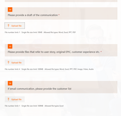 Step 2: The attachments get stored in SharePoint to their respective folder based on question number instead of a folder for each form submission. Meaning SharePoint creates a folder called Q14 for attachment 1 (for all form submissions) and Q15 for attachment 2 (for all submissions) and Q15 for attachment 3. I would rather have folders as submission 1 with files for Q14,Q15,Q16 and submission 2 with files for Q14,Q15,Q16 and so on.