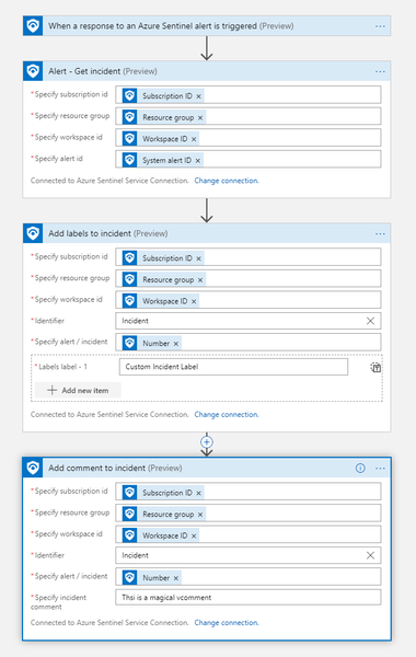 Hi! I've created a playbook to create incident in our ticketing system which then returns back ticketing system incident ID which I want to add as comment to Sentinel Incident. However it fails with...
