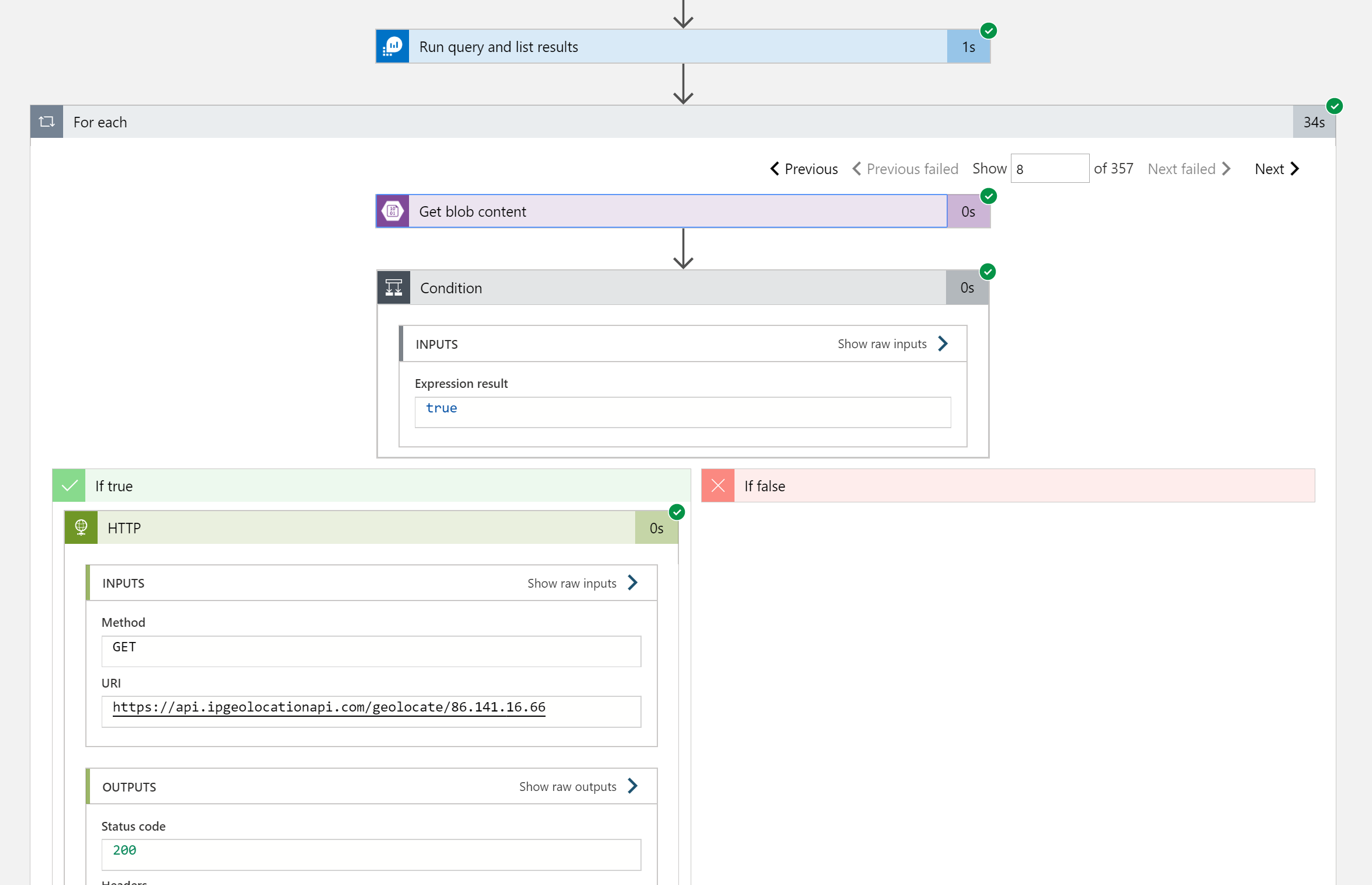 I also wanted to get information on where connections to our Cisco ASA were coming from geographically so I used another logic app to lookup IPs for their location, owner etc.