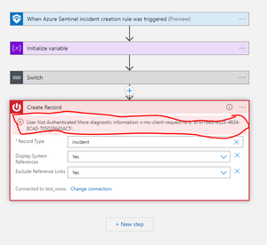 Fahad.- FahadAhmedNov 10, 2021Brass ContributorBy the way the customer doesnt want to install the Service Now addon and wishes to use Logicapp, I got pass through the authentication error that was posted earlier, but now i am getting the below error.