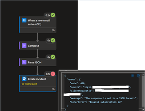 1 - The e-mail body of the e-mails you receive must have a consistent JSON payload to not have any issue while parsing the email body in the 'parse json' action.