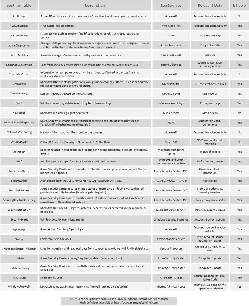 https://www.managedsentinel.com/wp-content/uploads/2020/01/Azure-Sentinel-Tables-v1.1.pdf