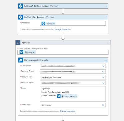 So I tried to extend the playbook by doing a KQL query against the SigninLogs table. If I query the table directly, I am able to find the UserName and/or UPN. When I added this query into the playbook, the first issue I had was that most alerts include multiple entities and the query would fail when it ran into the wrong entity type. So I tried adding a new step, "Entities - Get Accounts" so the individual entity would be available in the workflow. But this fails because it's expecting a text string and the object ID is the wrong type.