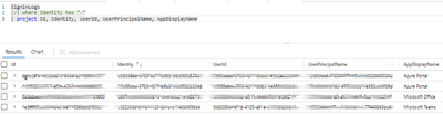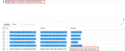 Hi Everyone, i ask you a question from basilar KQL " SigninLogs | Project Id,UserId,Identity" i receive correctly the events, but in some case in the Identity coloum receive an ID in this format xxxx-xxxxx-xxxx and not the Disaplay Name ?