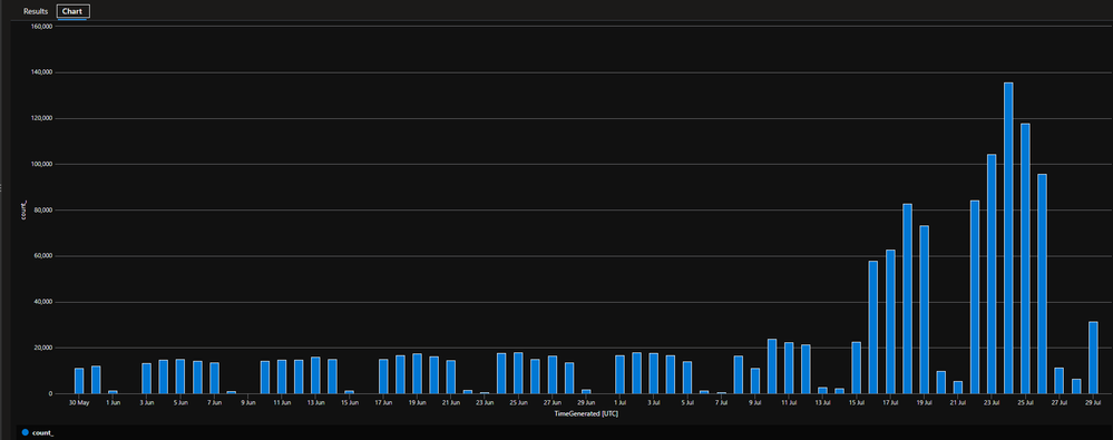 | summarize count() by bin(TimeGenerated, 1d)