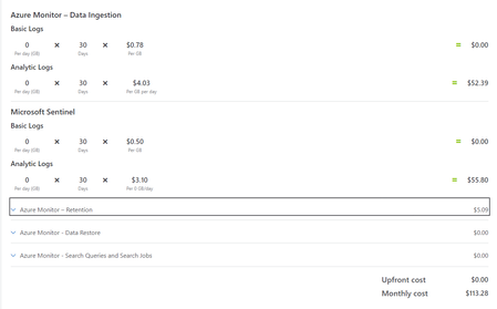 Hi everyone, I am using the Pricing Calculator for Microsoft Sentinel. I can see the pricing split into two parts - Azure Monitor and Microsoft Sentinel. In my understanding, Microsoft Sentinel wil...