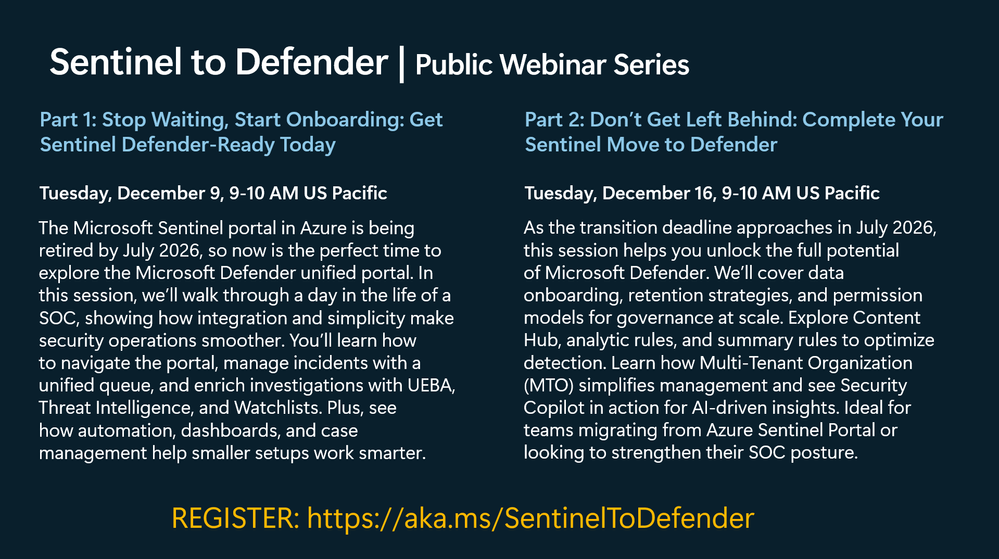 RenWoodsMicrosoftNov 20, 2025Sentinel to Defender | Two-part webinar series: Dec 9 & 16 Register here