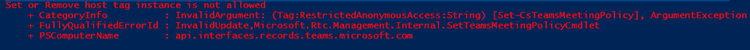 I have tried Set-CsTeamsMeetingPolicy -Identity "policyname" -RecordingStorageMode “OneDriveForBusiness” But I get the following error