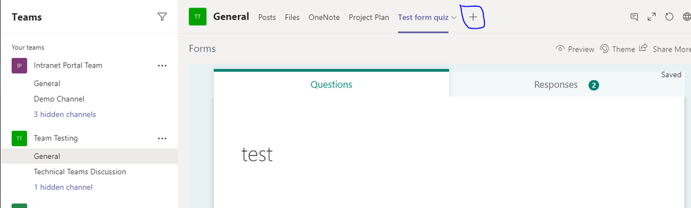 KJNova9 the user could be in Teams and adding the Forms from the Teams Channel. ask the user to go to forms and create a quiz