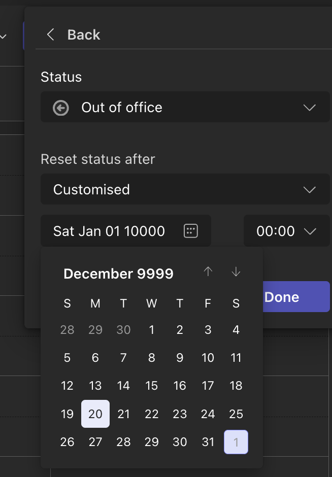 BUG: Setting customised duration for status date broken (MacOS desktop app)