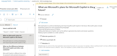 We are working with a Custom question-answering project for the conversational bot. We are using Custom question answering project for question answer pair.