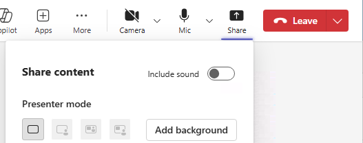 Doesn't matter if it is a call or a meeting, "Include sound" toggle does not work, can not be clicked or toggled when attempting to share screen with system audio from within AVD host that is using Teams SlimCore optimization.