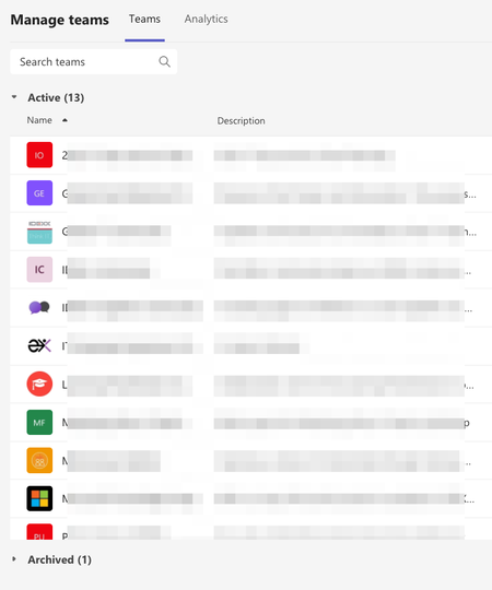 Hello! I'm trying to archive a Team however I now only see a limited number of "active" Teams available for archiving. For context, I'm a member of 32 Teams. When I search the Manage Teams archiving ...