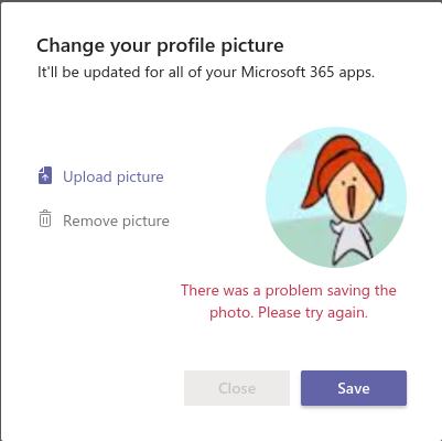 Can't change Microsoft Teams Profile Picture (Receiving Error)
