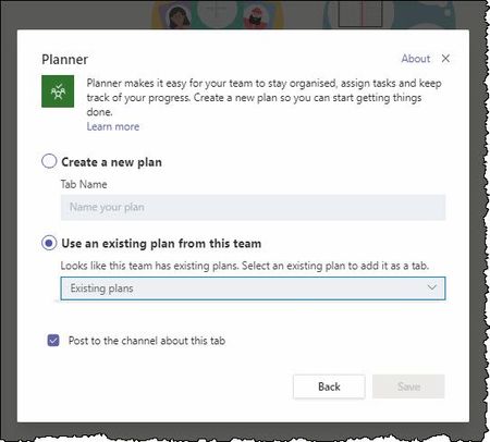 Hi, When I create a Team no Planner plan is automatically created. If I go to the Planner hub there is no plan and if I add a Planner tab it says that there are existing plans but nothing is disp...