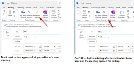 "Don't Host" button missing in meeting invites after send.