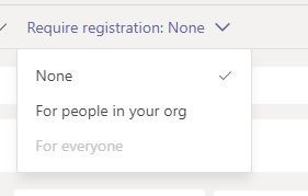 **In the future, the meeting registration setting won't control webinars; webinars are transitioning over to being controlled by the Teams Events policy (Set-CsTeamsEventsPolicy).