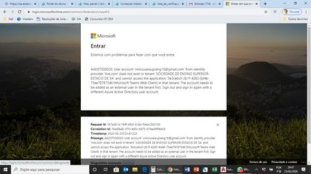 Bom dia, minha faculdade está disponibilizando aulas para equipes. Mas toda vez que o tento entrar no link compartilhado aparece essa mensagem de erro. Link compartilhado comigo: https://teams.mi...
