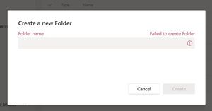Trying to create a folder in the files tab of a channel. Am receiving an error as shown below. I am not the owner. The owner and I have been trying to work out what might be going on. I can create fo...