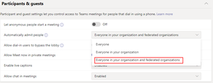 The doc site doesn't mention anything about trusted or federated organizations and what the difference is in terms of Meeting Policies in Teams.- Rob EllisSep 18, 2019Bronze ContributorAgreed, and apologies for not explaining further. Federation is the concept of allowing a Skype for Business or Teams organisation to communicate with another Skype for Business or Teams organisation, e.g. via instant messaging / chat, without the need to invite each other to a pre-booked meeting, or add guest accounts in either tenant.