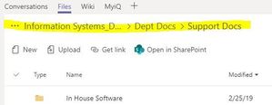 When navigating a SharePoint document library, through the Files tab in a Teams Channel ---- When actually navigating, I get a file path at the top which allows me to backup a folder or two ...