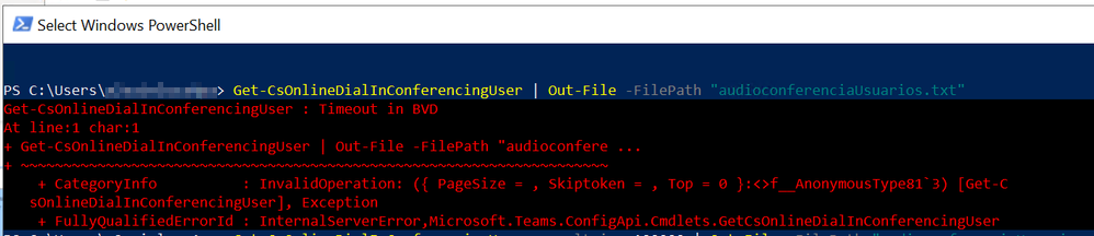 Get-CsOnlineDialInConferencingUser : Timeout in BVD