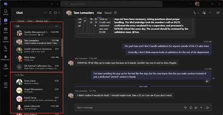 My co-worker is able to do this with his Teams and I cannot figure how he did it. On the left, you see that he has all of QA in one group, C3 Ops in another, etc. How did he set this up? He has no ...