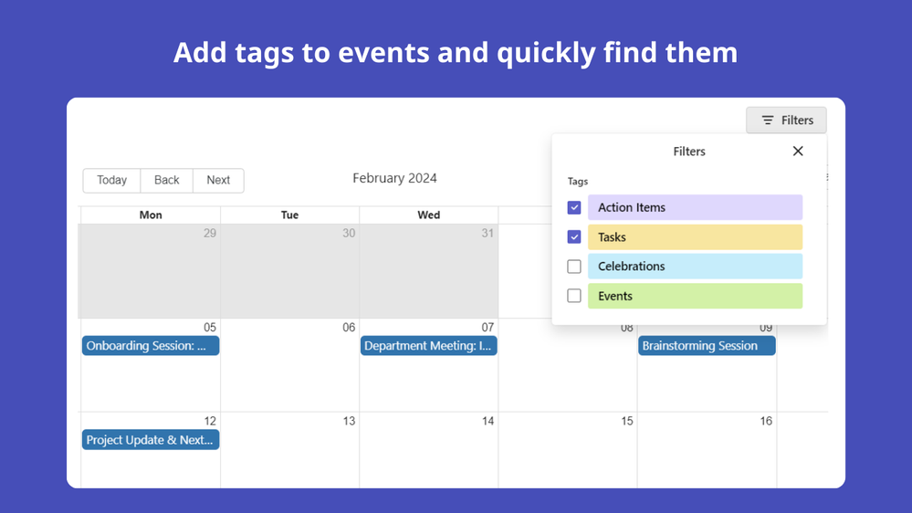 Shared calendar for Microsoft Teams - View all events in one place and filter by tags