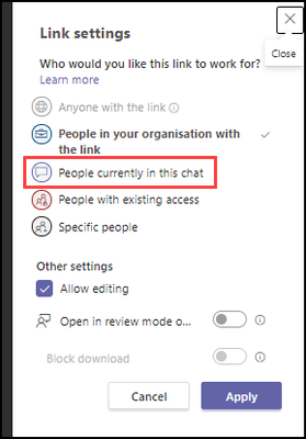 - Do you want to upload this sharing in all Teams or just in private chats?