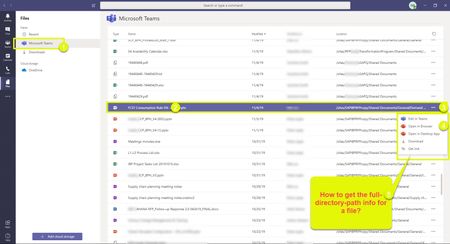 I tried this evening with current UI to find the file in teams, open the file (in a browser), select the 2nd hotlink in the location box to browse to the folder containing file on SharePoint, select details for file by clicking ellipse after filename, scrolling down to bottom of popup to Path.