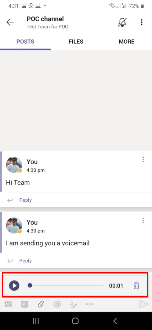 You can use the Teams app for smart phone to record and some message.
